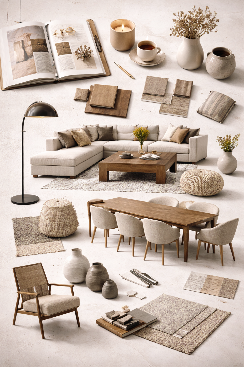 Nous vous proposons une liste d’achats cohérente avec votre projet, votre budget et votre style, afin de créer un intérieur harmonieux, fonctionnel et durable.